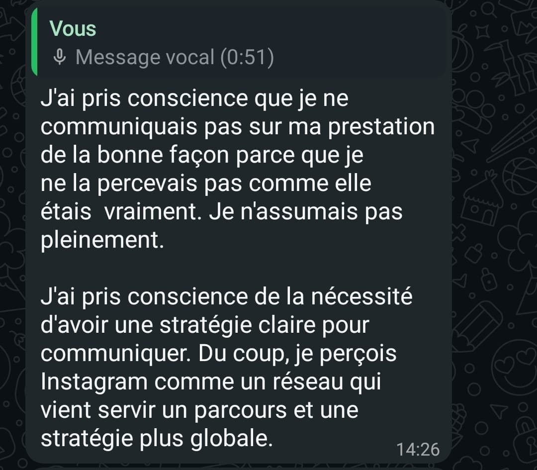 👉🏼Un suivi via WhatsApp pendant 3 semaines : Un doute ? Une décision à prendre ? Je suis là pour toi.